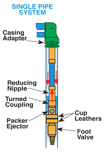 Some wells have pumps called jet pumps that are located on the surface or top of the well.
